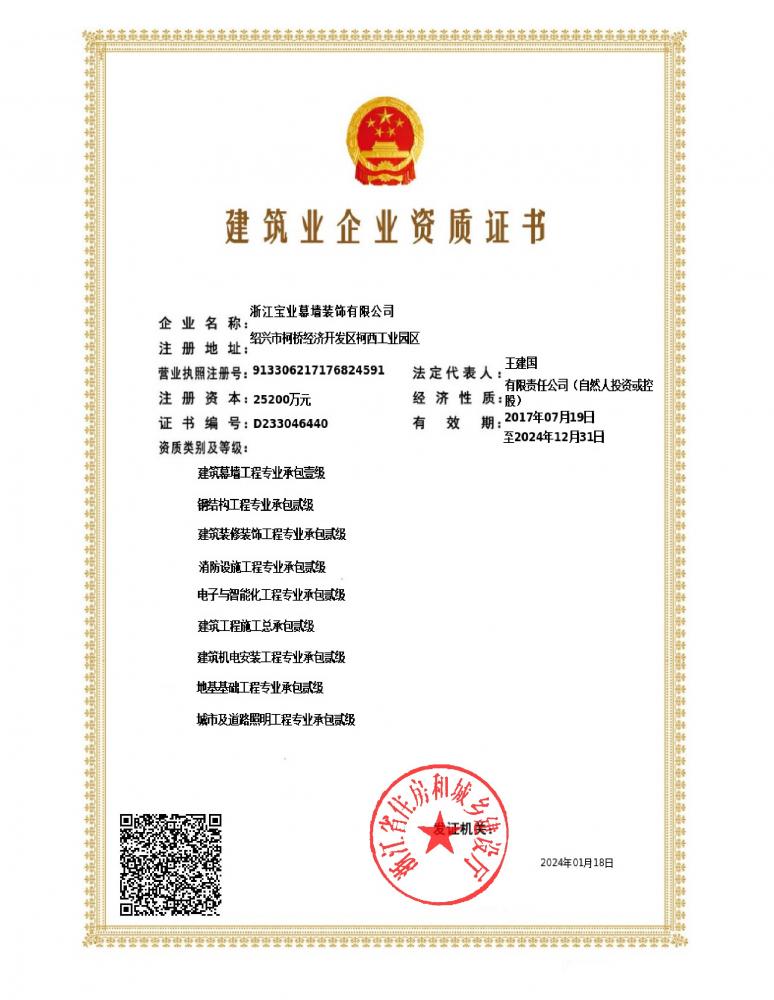 - 建筑幕墻工程專(zhuān)業(yè)承包壹級